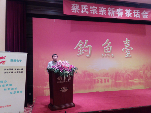 世界蔡氏宗亲总会常务副主席蔡启安在钓鱼台蔡氏宗亲新春茶话会上讲话